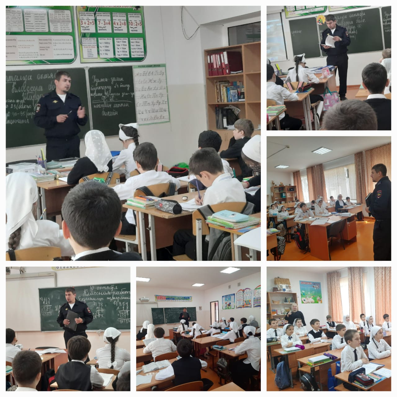 10.10.2022В МБОУ "Гудермесская СШ №3" Инспектор ПДН ГПДН ЛОП на станции Гудермес Темиралиев Турпал-Али Султанович провёл Лекции, беседы. На тему. Административная уголовная ответственность несовершеннолетних. И правила поведения на железной дороге.