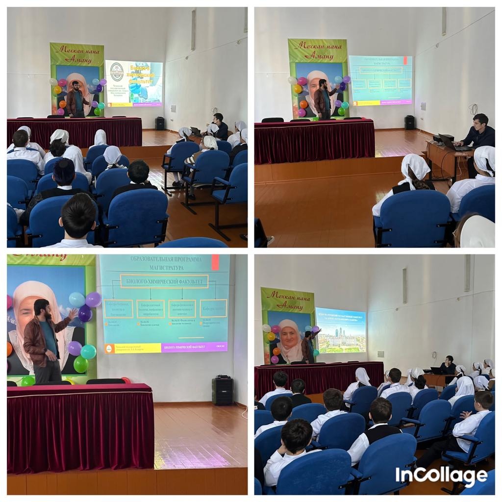 13.10.2023Сегодня,13.10.2023г.,на базе МБОУ «Гудермесская СШ 3» в рамках университетской олимпиады ,согласно графику проведения олимпиад и презентаций ,прошла презентация биолого-химического факультета «ЧГУ им.Ахмата Абдулхамидовича Кадырова». На мероприятии присутствовали обучающиеся 9-11 классов.