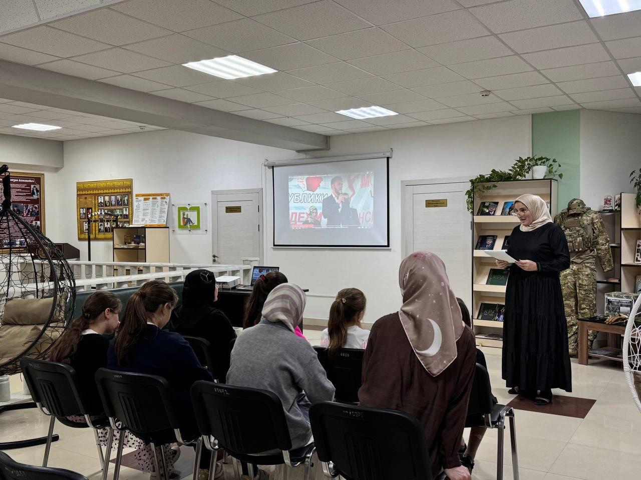 02.10.2024В Центральной районной библиотеке, обновленной по нацпроекту «Культура», с обучающимися МБОУ «Гудермесская СШ 3» прошел молодежный калейдоскоп «Молодежь и книга — даешь встречное движение!», посвященный Дню молодежи Чеченской Республики, который ежегодно отмечается 5 октября. Цель мероприятия: отметить День молодежи Чеченской Республики и подчеркнуть важность роли молодежи в развитии региона. На мероприятии присутствовали читатели библиотеки. В начале мероприятия, библиотекарь рассказала присутствующим, когда возник сам праздник, как его отмечает молодежь республики, и, какие праздники выпадают еще на эту дату. Ведущая познакомила присутствующих с литературными жанрами, наиболее востребованными среди молодежи, такими как фантастика, классика, детектив, современный роман и психология. Мероприятие сопровождалось аудио и видеороликами. Участники декламировали стихи чеченских поэтов, создавая особую атмосферу. Ребята с азартом отвечали на вопросы викторины «Молодежь и книга».
