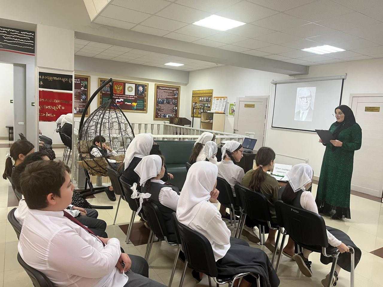 01.10.2024Литературно-краеведческий час «Когда познавалась дружба», посвященный 135-летию со дня рождения классика чеченской литературы Саид-Бея Арсанова, состоялся в Центральной районной библиотеке, модернизированной в рамках национального проекта «Культура». Целью данного мероприятия было знакомство участников с жизнью и творчеством писателя Саид-Бея Арсанова. На мероприятии присутствовали учащиеся СШ№3.Саид-Бей Арсанов – чеченский писатель и блестящий знаток родного языка.Мероприятие началось с ознакомления с жизнью и творчеством писателя Саид-Бея Арсанова. Ведущая Нагалиева Т. рассказала присутствующим об основных вехах жизни писателя, о его роли в истории чеченской литературы.Также, в ходе мероприятия прозвучали отрывки из романов, которые смогли дать слушателям возможность проникнуться атмосферой произведений и лучше понять стиль автора.Мероприятие завершилось общим обсуждением, в котором все желающие могли высказать свое мнение и задать вопросы.К мероприятию была оформлена тематическая полка «Жизнь и творчество Арсанова Саид-Бея».Ребята высоко оценили вклад мероприятия в их понимание жизни и творчества Саид-Бея Арсанова. Они выразили желание глубже познакомиться с его биографией и художественным наследием