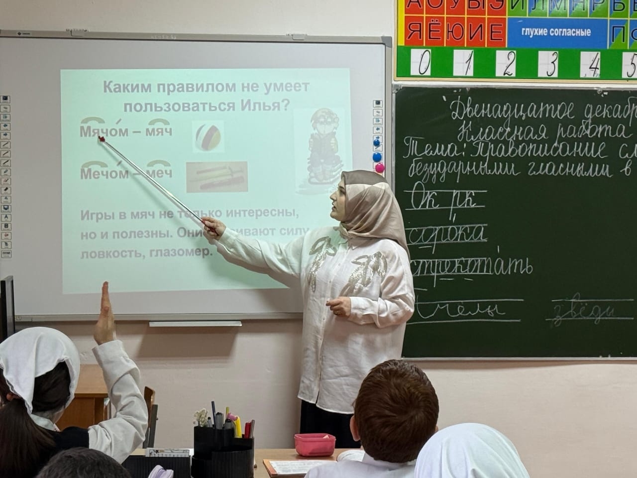 15.12.2025Учитель начальных классов Магомедова Макка Рамзановна провела открытый урок русского языка во 2 «Б» классе на тему:«Правописание слов с проверяемыми безударными гласными в корне слова». В ходе урока были успешно отработаны умения правильно обозначать безударные гласные в корне слова, развивались орфографическая зоркость, внимание и интерес обучающихся к русскому языку.